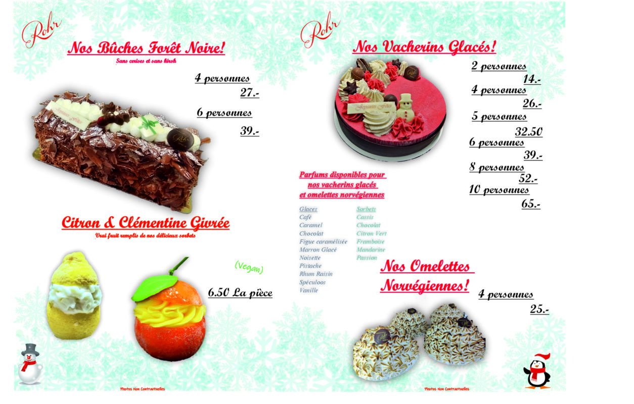 Voici nos horaires spéciaux pour cette fin d’année 2025. Boutique Glaces&Chocolats Rohr, rue Vautier6, 1227 Carouge: Boutiques Place du Molard 3 et rue d’Enfer 4,