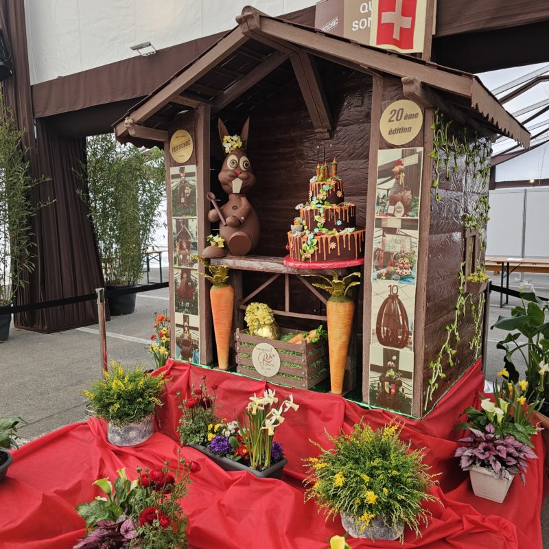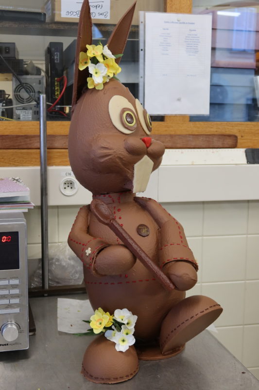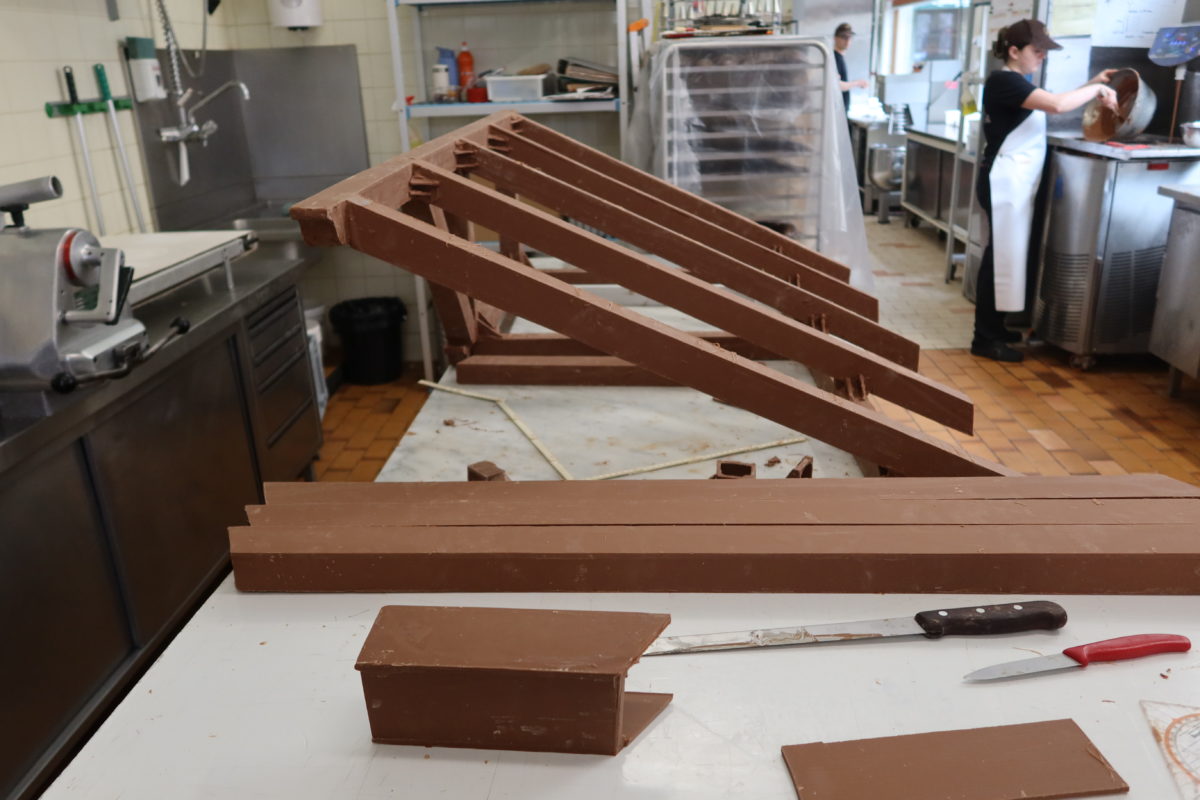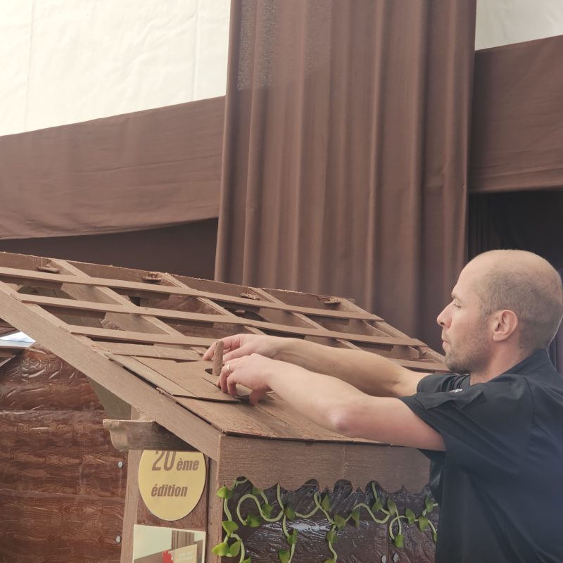 Un lapin pâtissier, des photos des pièces montée crées pour les éditions précédentes, un gâteau d’anniversaire, un peux plus de 138 kg de chocolat on été nécessaire à la réalisation de cette pièces exceptionnelle crée spécialement pour l’occasion :